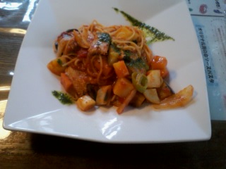 イワシトマト味パスタ野菜がゴロゴロ