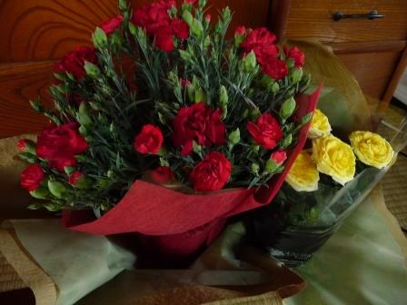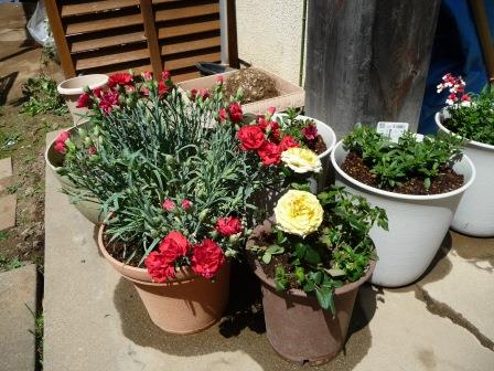 仕事の印刷して、11時過ぎに買い物へ。Kメリとドラックストアーとアップルへ。帰宅して買って来た土で、カーネションと黄色いバラをプラ鉢から大きな鉢に植え替える。風が強いのでまた玄関内へ避難。お昼して2時間ドラマ観ながら昼寝。 4時過ぎ炊事していたら半頃、D帰宅。まだご飯も炊けないので外で草取りや水くれ。
