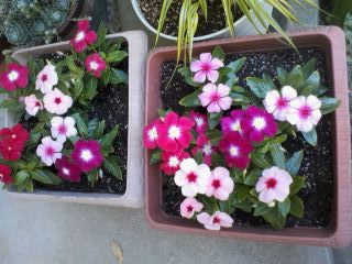 10時頃、Kインズへ。その前に職場へ寄り花鉢に水。理事長が一人で草取りをしていたので一応挨拶だけ。(^^ゞ パンジーが徒長して見苦しい。なんとかしようとKインズで日日草12株買う。B◎Gで食材を買って帰宅。 速攻花を植える。 土が足りずKメリへ買いに行く。 2鉢完成。ついでに大葉の種を鉢に撒いた。