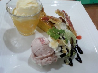 お昼にサバと煮物を食べてみる。 やがてかめさんからメールをもらい、お茶場所をIシティに決定し、支度して出かける。 買い物券を使いバッグ購入。 13時半、かめさんと合流してデザート盛り合わせ&ポットティーで15時過ぎまでおしゃべり。甲府の御土産を頂く。(^謝^)♪笑ってしゃべって楽しかった〜ぁ