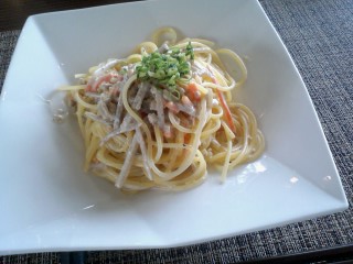 ハーブセンターもみて、ランチへ。「まぐろの香草パン粉焼き トマトソース・鶏肉とごぼうのクリ ームパスタ・ パン・デザート(トマトのゼリーパンナコッタ)・珈琲」