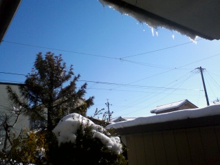 いいお天気なのに、眠い(笑) 11時頃塀沿いの雪を壊し、道路に広げる。向かいや裏のうちなど同じ通りの家々も軒並み雪溶かし。明日の雪の予報に対応してかな。
