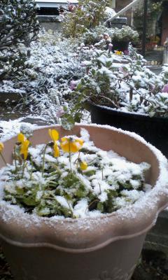 外はざんざんの雪降り!ついに雪。道路は溜まっていない。