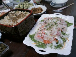 煮魚・生野菜・塩辛などあるもの適当(笑) |