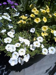 そのままY形のミラーフード館へ行ってみる。ラベンダー頃合いなので受付で聞いたら「明日からよぉ」と昨年顔見知りになった方に言われた。「電話してこなくちゃ」って。「さっき穂高からもお客さん来たのよね〜気の毒だけれど明日からよお〜」って・・残念。(笑) 30分程立ち話。今年は大きな看板が立っていた。 帰宅して昼していたら、K子さんがリハパンやパット類を持って来てくれた。 さんざん立ち話してベルフラワーの鉢をお持ち帰り、私に「シンビジュウム」をくれると言うがあまりいい返事ができない(笑)蘭系はちと苦手かも・・。