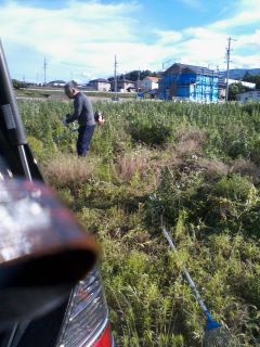 3時過ぎにDは床屋へ、私はドラマを観てのんびりしていたら帰宅後「草刈りに行ってみる。どうする?」って行くしかないでしょ。お米はもう仕掛けてあったので長袖にタオル、長靴2足軍手を持って出かける。いお天気。道向かいのお宅では若夫婦がガーデニング中。軽く挨拶だけして草刈り〜始動にちょっと手間取ったがなんとか刈れて良かった。