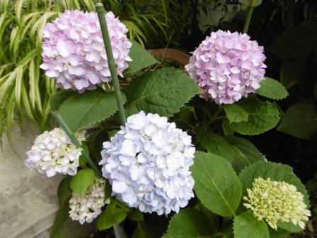 汗かきついでに家の入口周りの整理。あじさいが2度目の花を咲かせてくれた。