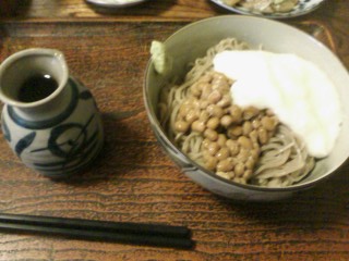 夕飯は豚シャブ(もやし・とまと・きゅうり・いんげん)納豆・味噌汁・漬物など |