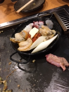 焼鳥、ホタテバター焼き(Dだけ) 紅茶煮豚、大根の煮物、酢の物、漬物、もやし炒め