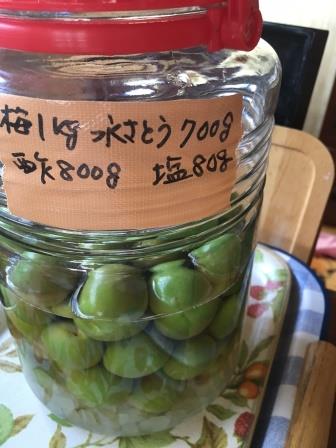 梅1K 氷砂糖700g 酢800g 塩80g(TVの「さしす梅干し」の影響で今年は入れて見た