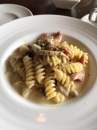 ソーセージとキノコのホワイトソース(フィジリ) |