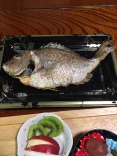 13時半頃、息子と悠が来て、悠に見つからないように爺さんと息子はタイヤ交換。その間子守で家事が出来ない。(^^ゞ 息子が一人で嫁さんと蒼を迎えに行き、IシティのTルヤまで行って鯛を受け取り刺身を2パック買って来た。眠い悠さんはグズグズで、重たいのでおんぶ紐で背負ったら、喜ばれて仕方なくそれでウロウロしていたら、嫁さん機嫌悪い「もう三歳なのに」だって。んじゃ、誰か子守代わってよ(笑)炊事できないじゃん。アサリも嫁さんが持ってきたし、筑前煮となますも嫁さん作。どれも美味しくできていた。