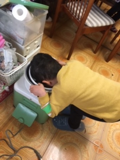 居間は爺さんが、私が座敷とトイレの掃除。やがて母子が来るが、悠の主導で振り回され、室内で遊ぶ。遊びながら4日の蒼太のお食い初めの打ちあわせ。