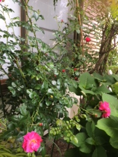 用事もないのに5時に目覚める。スマホニュースを観て6時頃居間に行ったが、Dはまだ寝ていた。洗濯を回し外へ。玄関横のバラが咲き始めた。