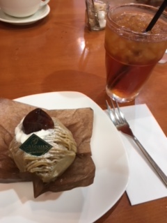 11時前にかめさんと合流しテラスへ。パンバイキング、クリームソーダ、ケーキセット(私だけ、モンブランとアイスティー)うひひ〜〜良く食べ、よくしゃべって英気を養わせてもらった。(^謝^)♪