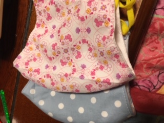 マスク、古いガーゼタオルで作ったが、生地がふにゃふにゃで作りにくい(笑)が顔なじみはいい。