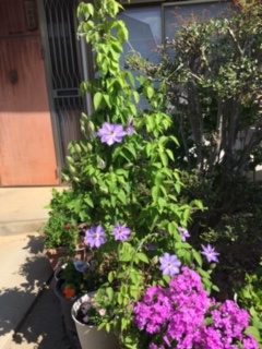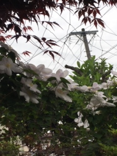 右ひざに違和感があるので、しゃがんでの草取りはやらない。 庚申バラが満開で、すこし間引く。玄関先のテッセンはそろそろ終わりで、白が咲き始める。
