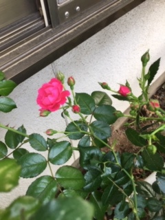 すっきり5時半起床。庭へ出る。玄関先のバラが咲いた。鉢物に静かに水。早朝は周りが静かで水音が響く(;^_^A 朝飯新聞洗濯。6時半、D散歩から帰宅し、外から雨戸をあけてくれた。