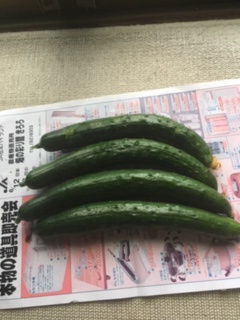 今朝がた3時にトイレに起きた時、床を走る黒いもの!電気を点けた見たら、足が沢山あるアレ!Kンチョーをシューするが液が少なく威力がない、必死で押してシューシュー!で、勝った!ティッツュとビニール袋で摘まんで口を縛って完了。大トリ物ですっかり目が覚めてしまった。4時ころやっと寝たら5時半のアラームで起きられず、グズグズ。今週は悠の送り当番なのであまりゆっくりできない。目ざめに外へ出て深呼吸して、朝飯、洗濯。やがてDも帰宅し、朝飯。 7時半過ぎ、揃って悠を迎えに行く。早めに着いたので野菜を支柱に縛ったりする。きゅうりが生っている! やがて悠を預かって時間潰して、8時に園に送る。 帰宅後、Dはゴミ収集所で、私は居間と自室の掃除、。そこへK子さんが挿し木を植えるようにとプラの鉢を幾つも土付きで置いて行った。さっそく移植する。空木3鉢、アジサイ1鉢、良い花咲かせてね~(笑)