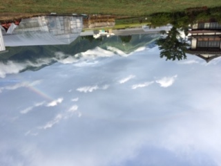 6時前に起きて、虫よけし、長袖長ズボン姿で庭へ・・。庭仕事より歩こう(笑)ブラブラと歩きに出たら西の空に虹。スマホで撮る。なんてやっていたら、小雨になって歩るく気がうせて、帰宅。途中、Dにばったり、今日は隣の区が掃除の日で放送が流れたので、Dは公園で間違えてきた人に「中止です」というんだって、ご苦労様。 洗濯ほしてから朝飯。Dも帰宅。 嫁さんから可愛い画像10連発。三婆から朝の挨拶(笑)お返しに虹の画像。 そんなことしていたら、D爆睡。昨夜夜中にTV観ていたそうだ。しょうがないので静かにしていてやる。 全体に気温が下がってうたた寝にはいい。